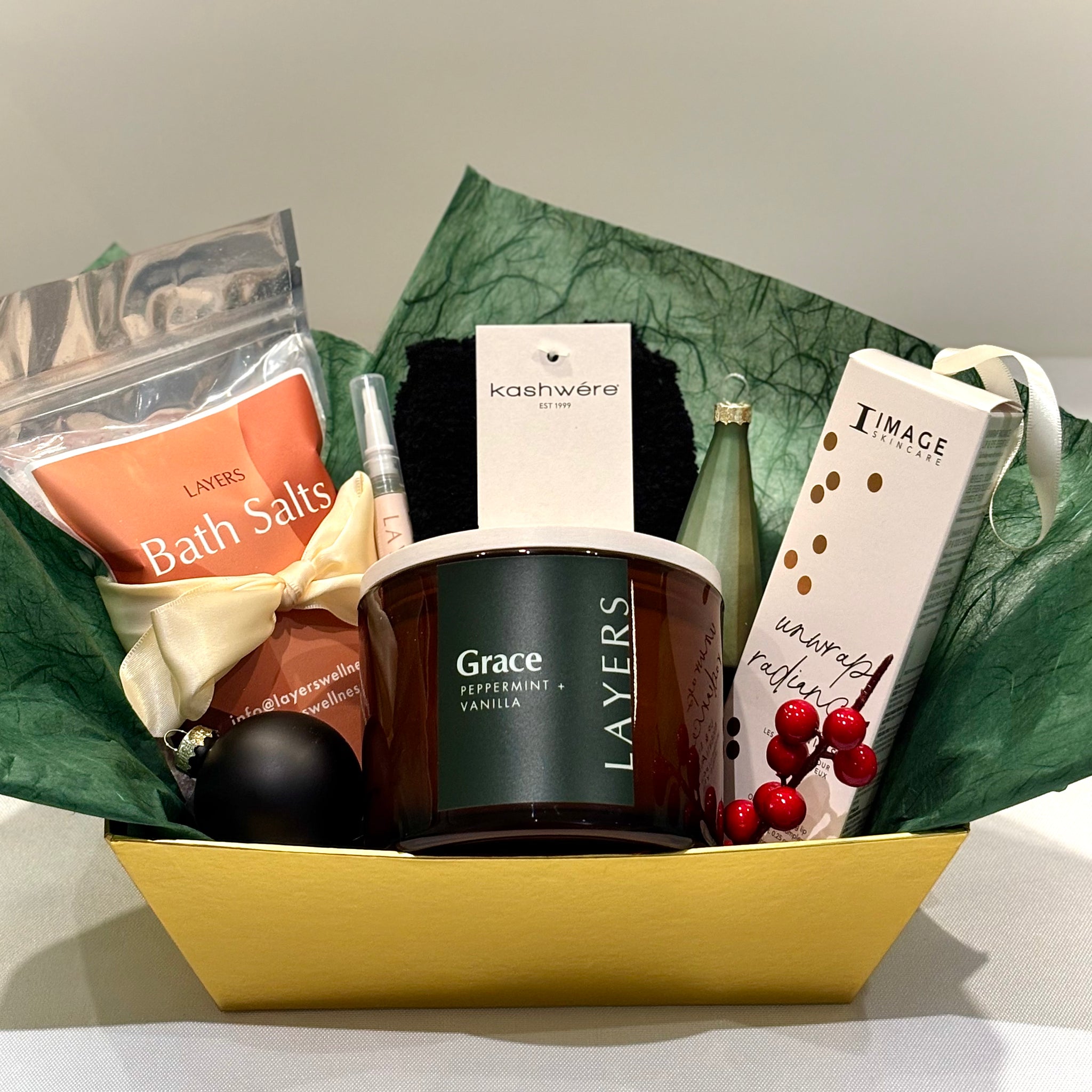 Unwind with our Layers Holiday Gift Basket, filled with soothing wellness essentials designed to calm the mind, refresh the body, and elevate your everyday routine.